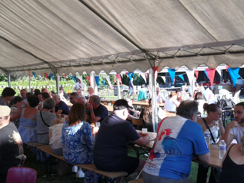 Ce dimanche 13 juillet, pour la deuxième année consécutive, nous avons eu le plaisir de renouer avec les traditions à l’occasion de la Fête nationale. La municipalité, en partenariat avec le Café associatif « Entr’Amis », ont uni leurs efforts pour proposer un moment de convivialité autour d’un repas animé par les Funny Sharks et Anouna.