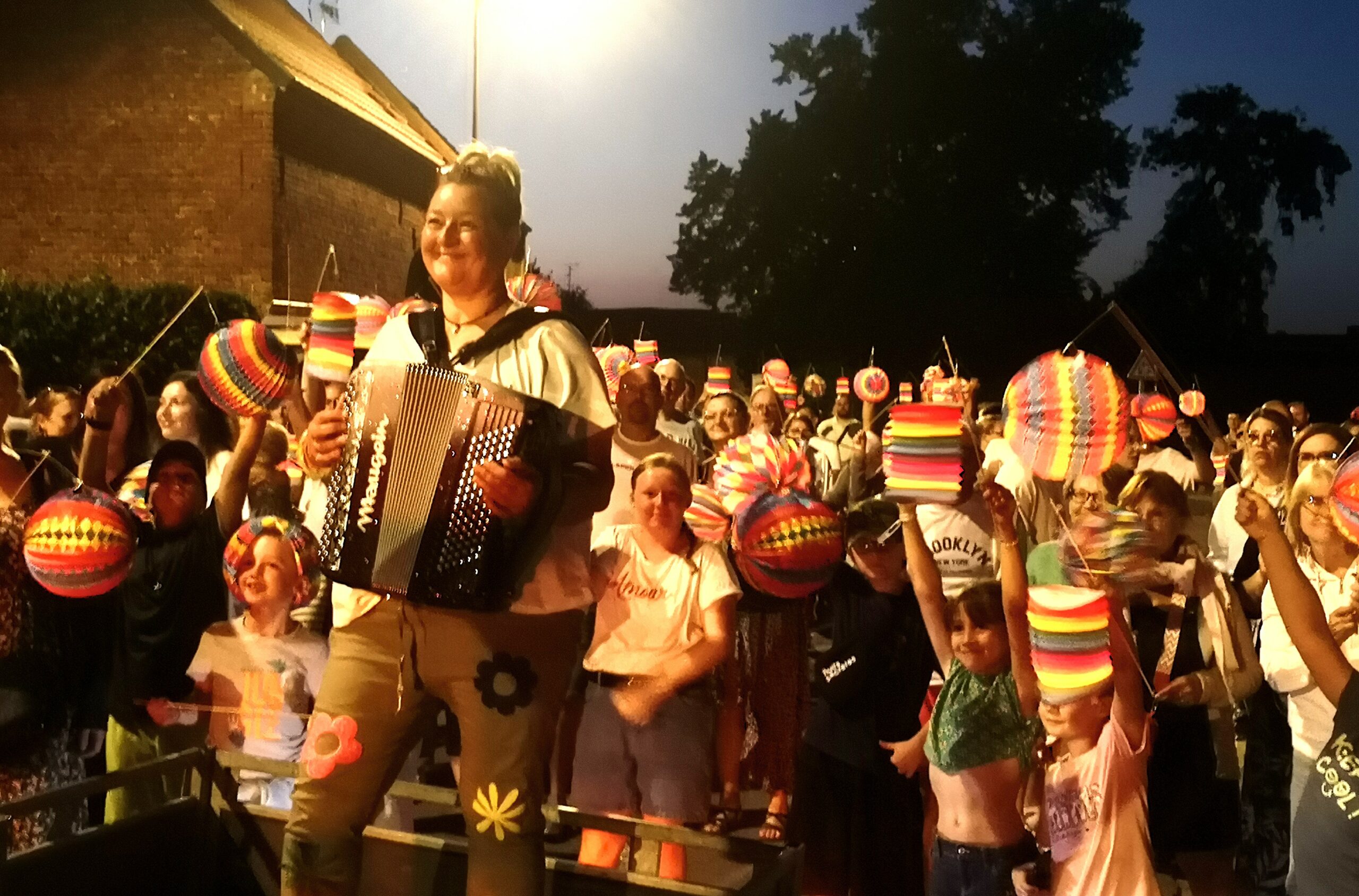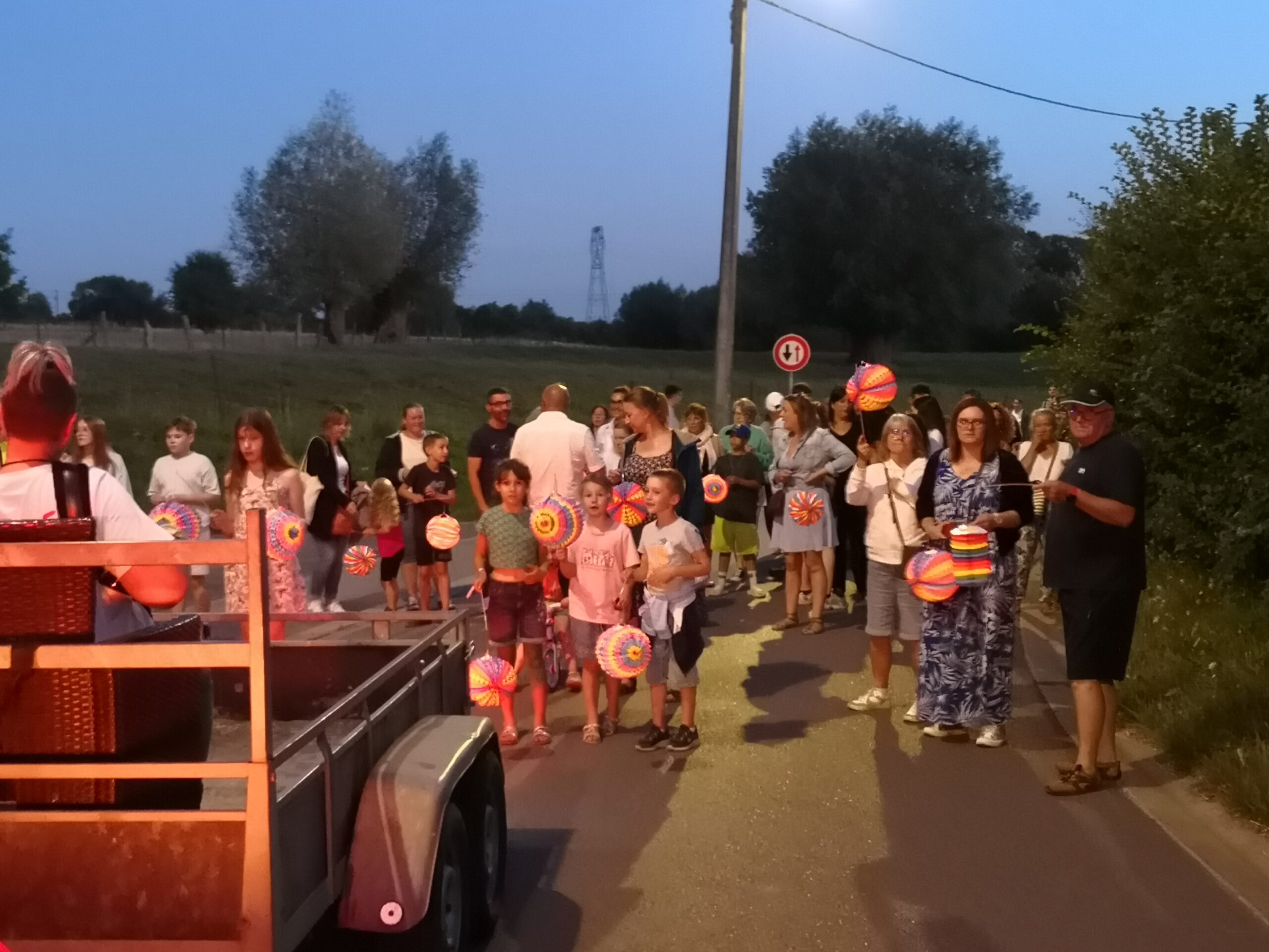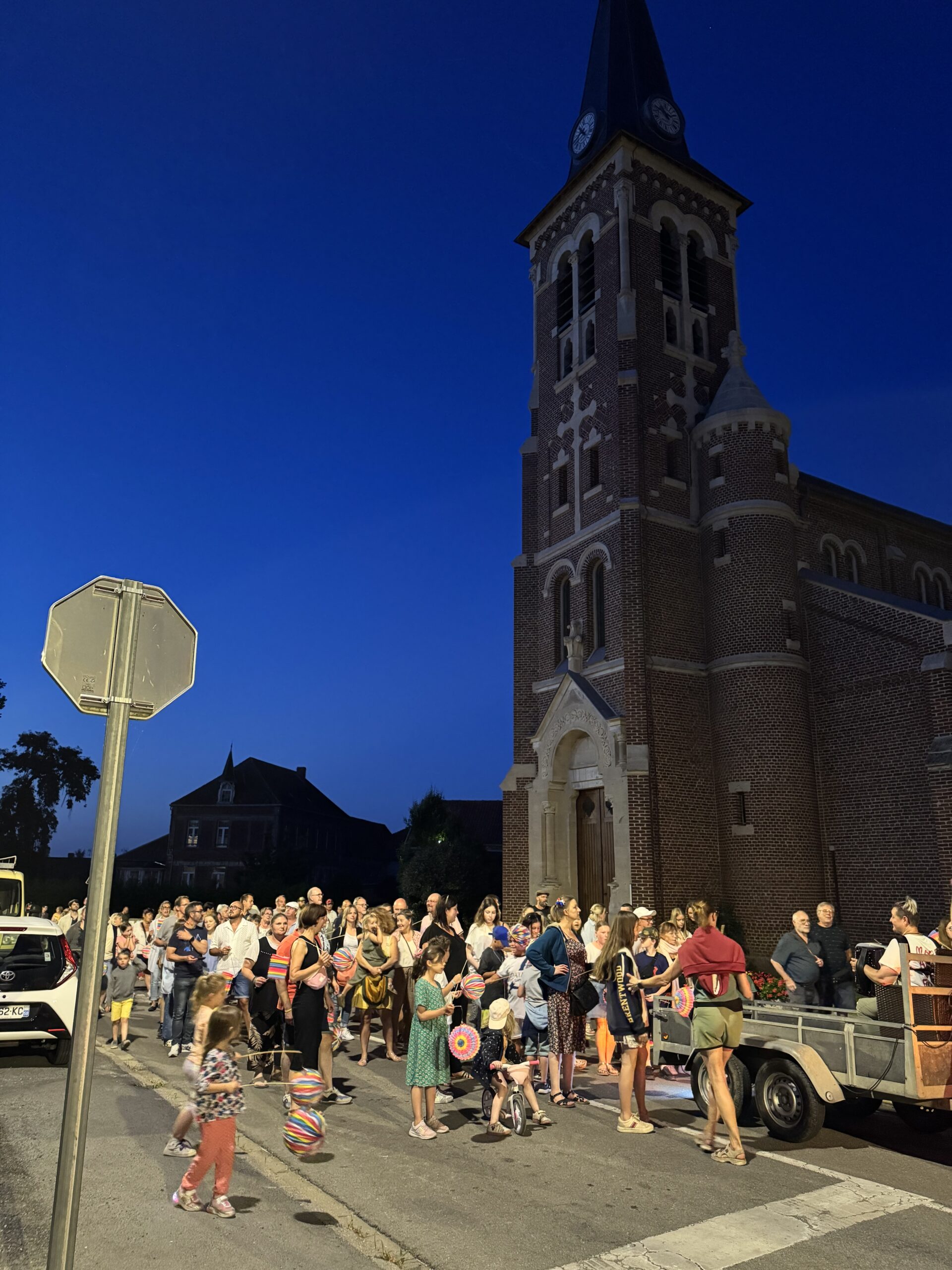 La nuit tombée, des lampions ont été distribués aux petits et grands pour une retraite aux flambeaux dans les rues de notre village. A 23h, nous avons pu lever les yeux au ciel pour admirer le feu d’artifice.